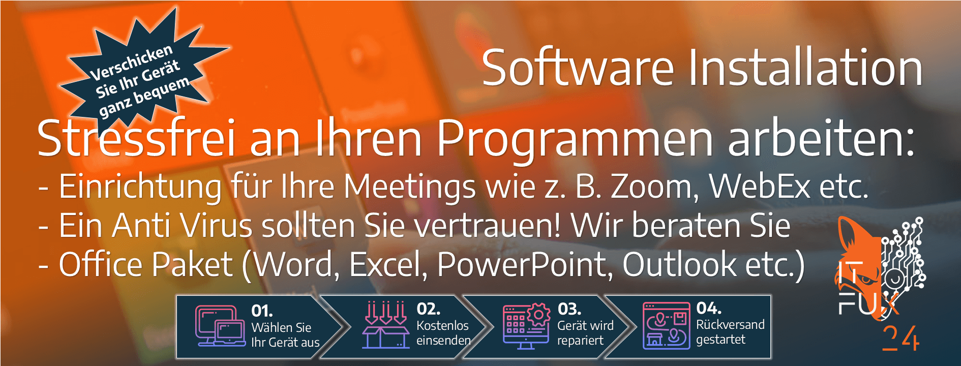 Wir installieren mit Original-Lizenzen Word, PowerPoint, Excel, Outlook und andere Software.